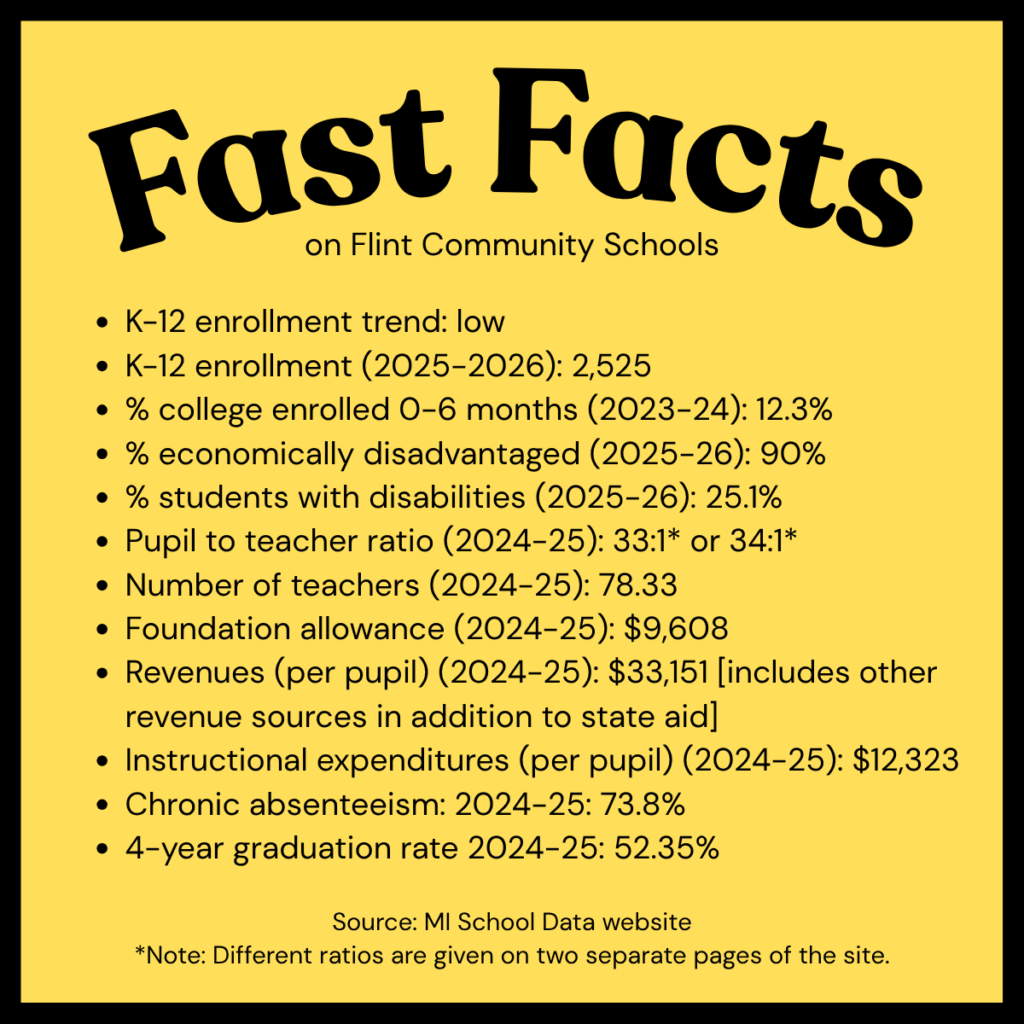 At the March 18, 2026 meeting of the Flint Board of Education (FBOE), initiatives were launched to address the school district’s ongoing loss of students, lagging standardized test scores, and the district’s approximate 50% graduation rate.